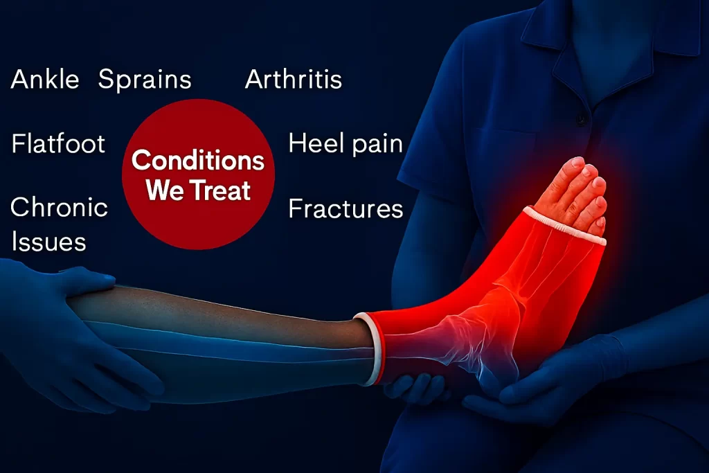 We specialize in diagnosing and treating various foot and ankle conditions that can impact your daily life. Our expertise includes managing arthritis, heel pain, fractures, ankle sprains, and flatfoot. Additionally, we provide care for chronic issues like Achilles tendon pain, wounds, and diabetic foot complications. Our comprehensive approach ensures that every patient receives personalized treatment to improve their overall foot health and quality of life.